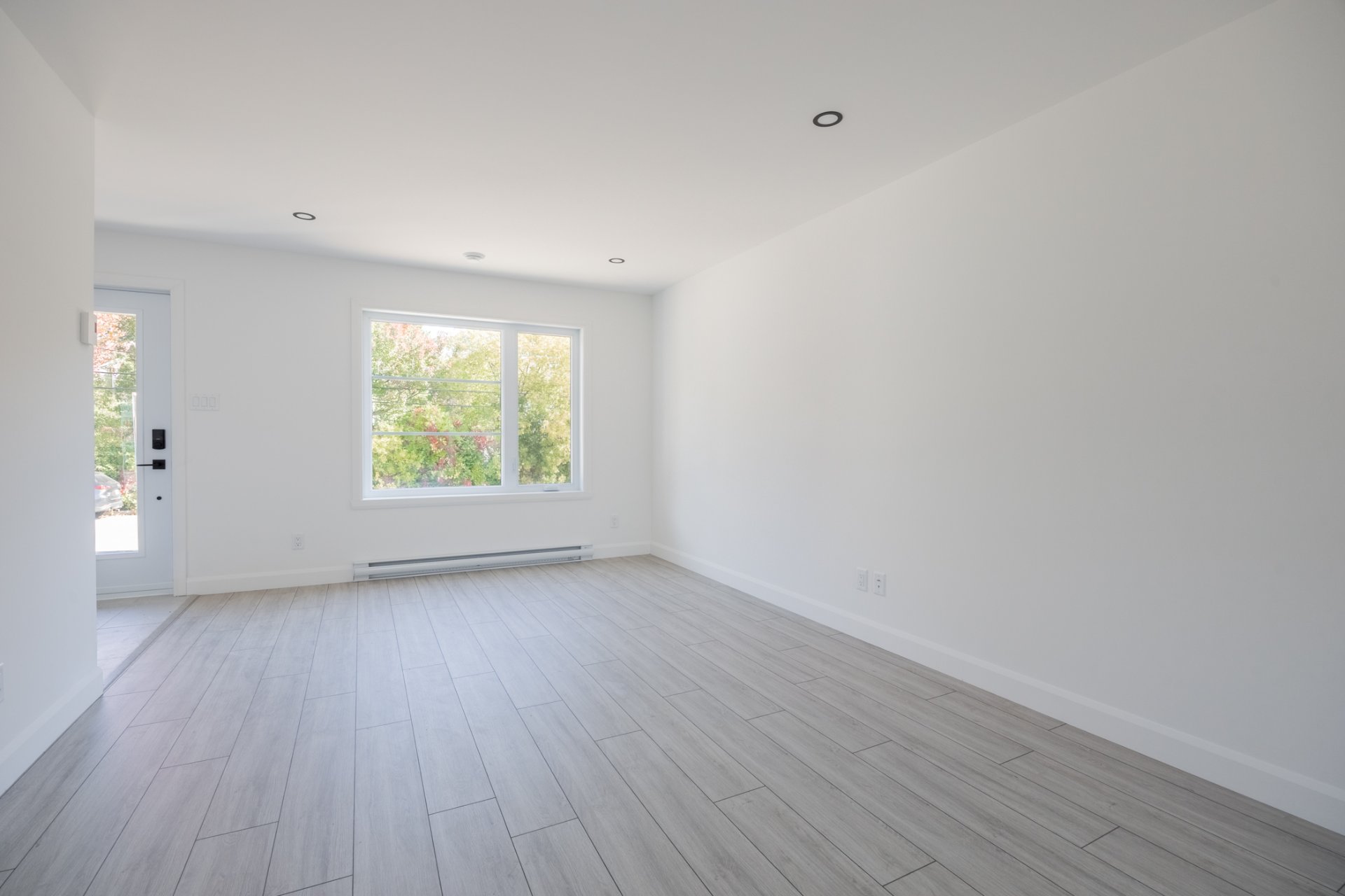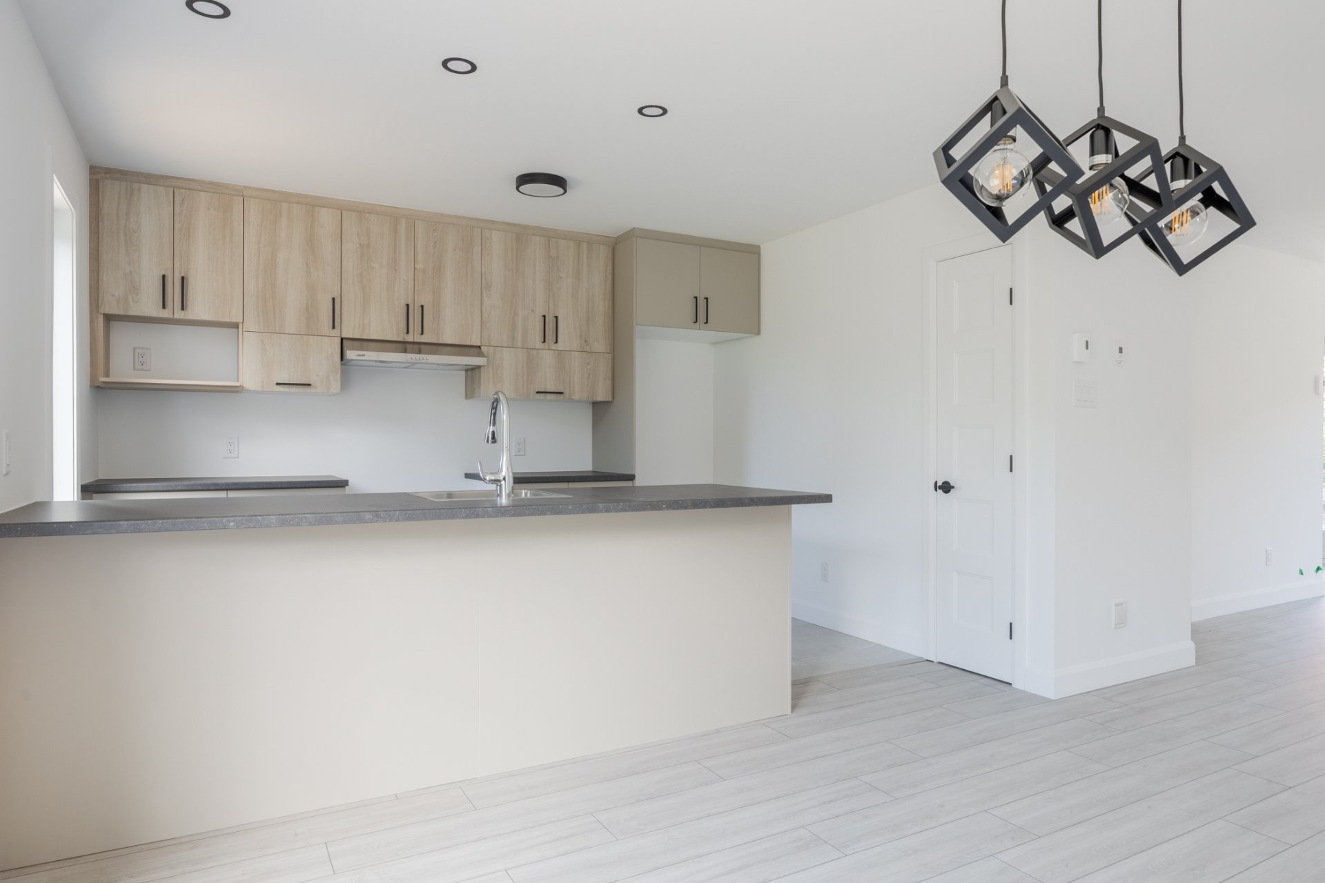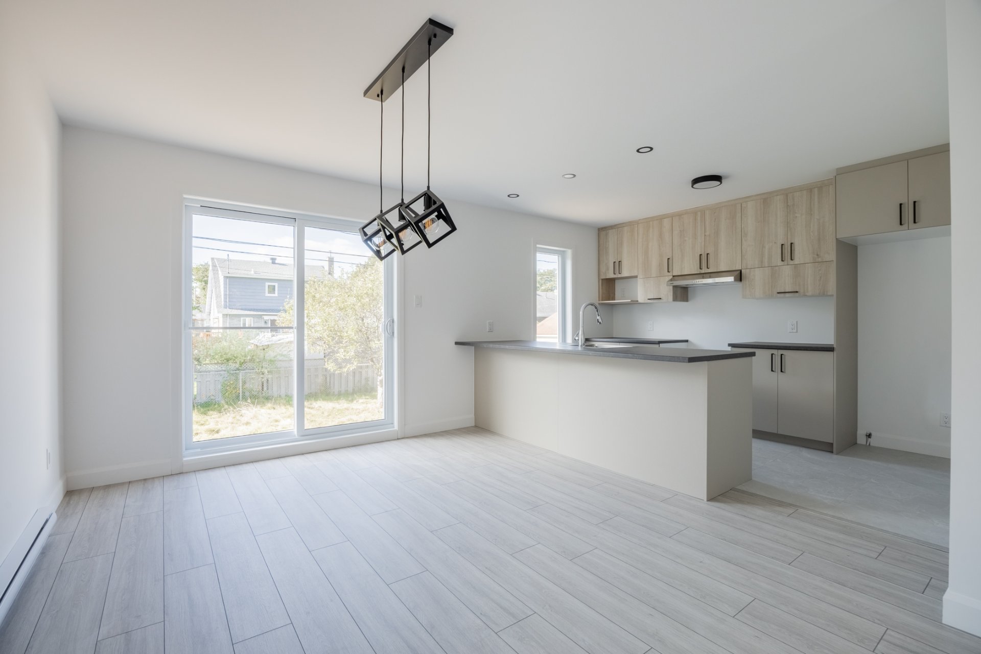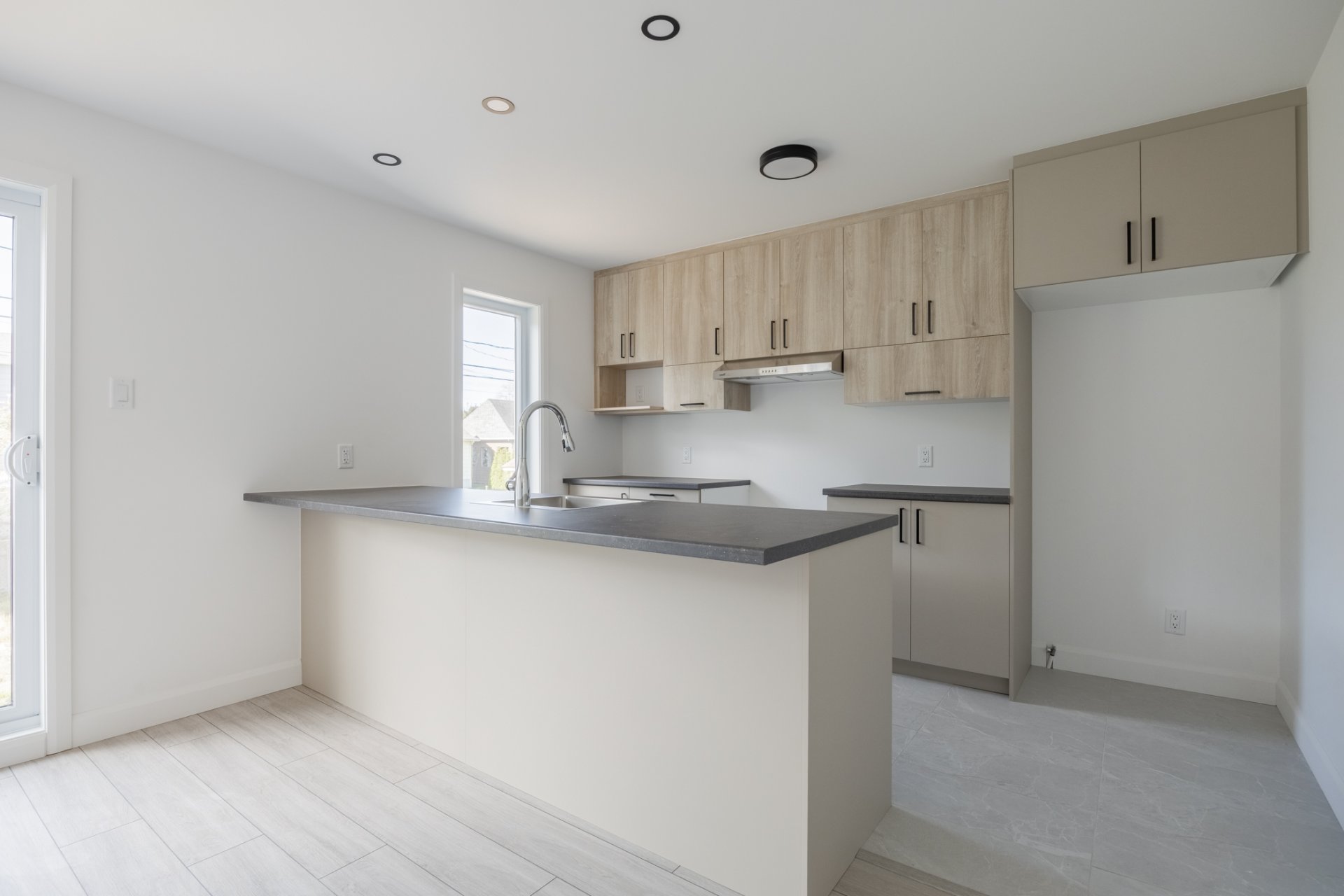 Bi-familial jumelé cottage 20X32 pieds, 3 chambres à coucher à l'étage, escalier de bois, céramique 12x24, armoires jusqu'au plafond, bain podium, douche indépendante en céramique, installation laveuse/sécheuse au sous-sol. 2 stationnements. Frais de copropriété 120$/année. Plan parcellaire et nouveaux lots à venir.