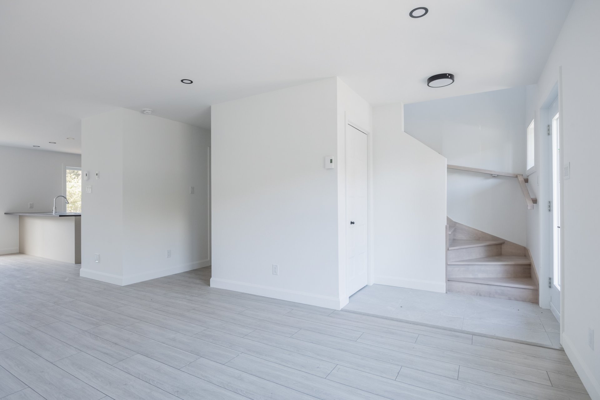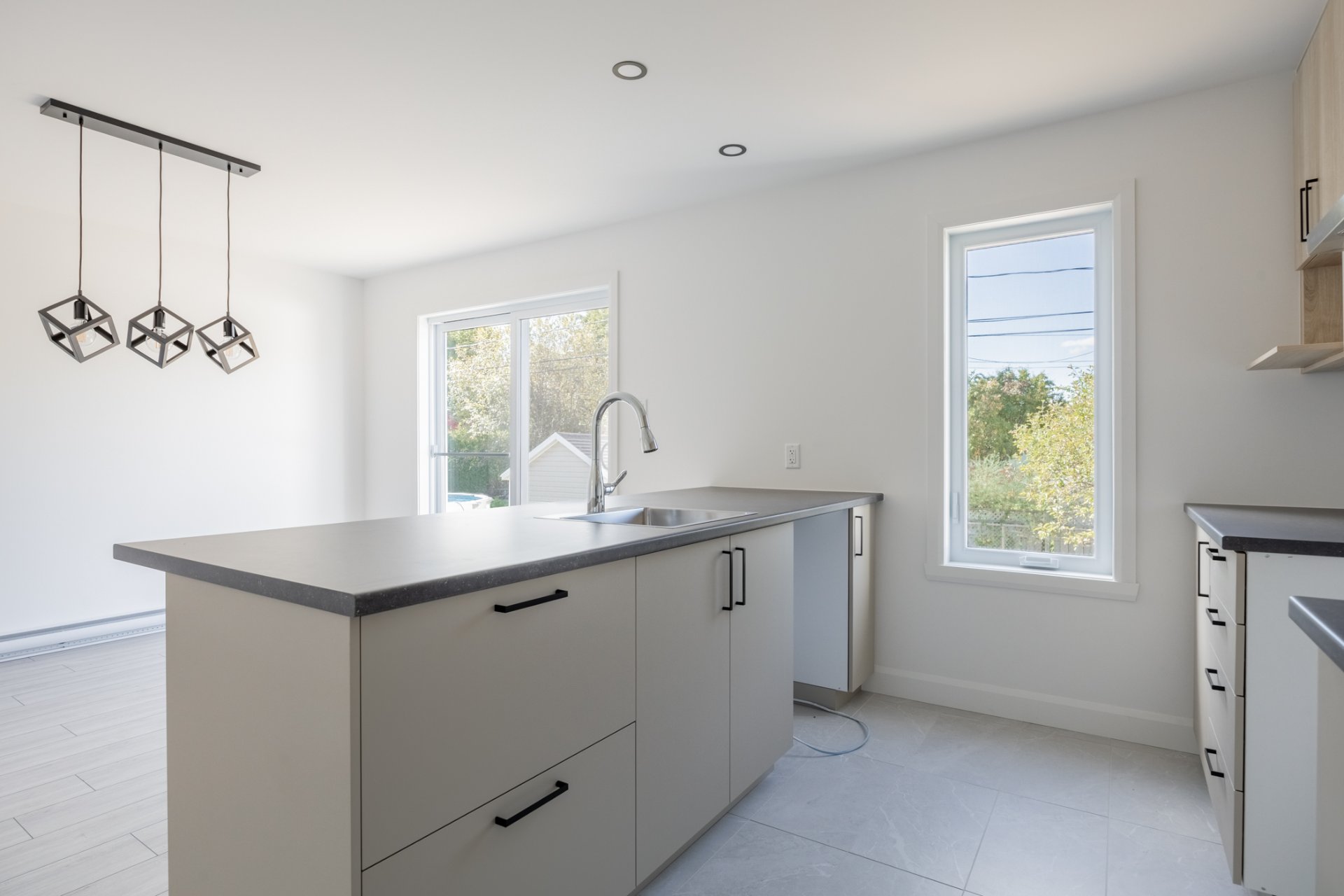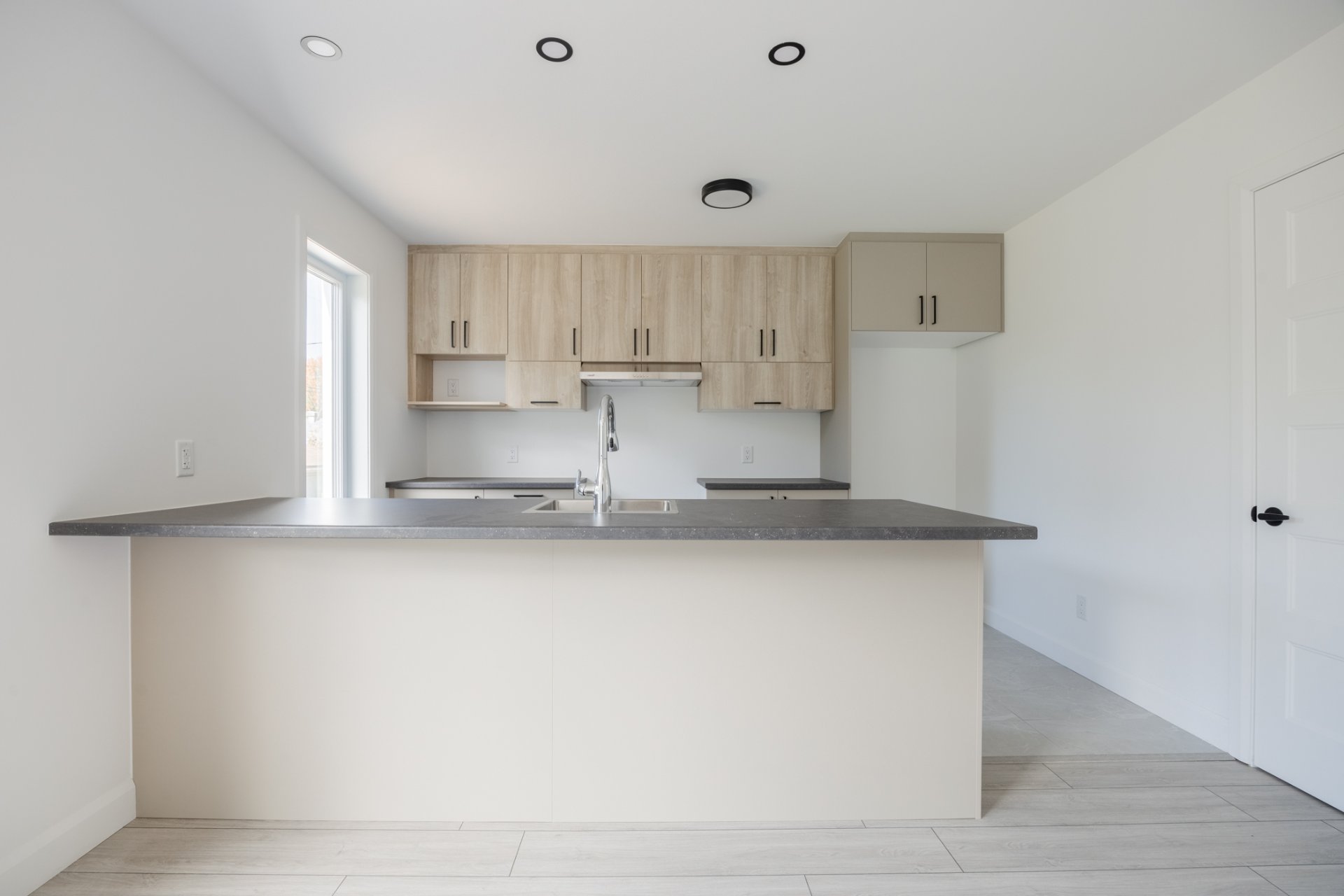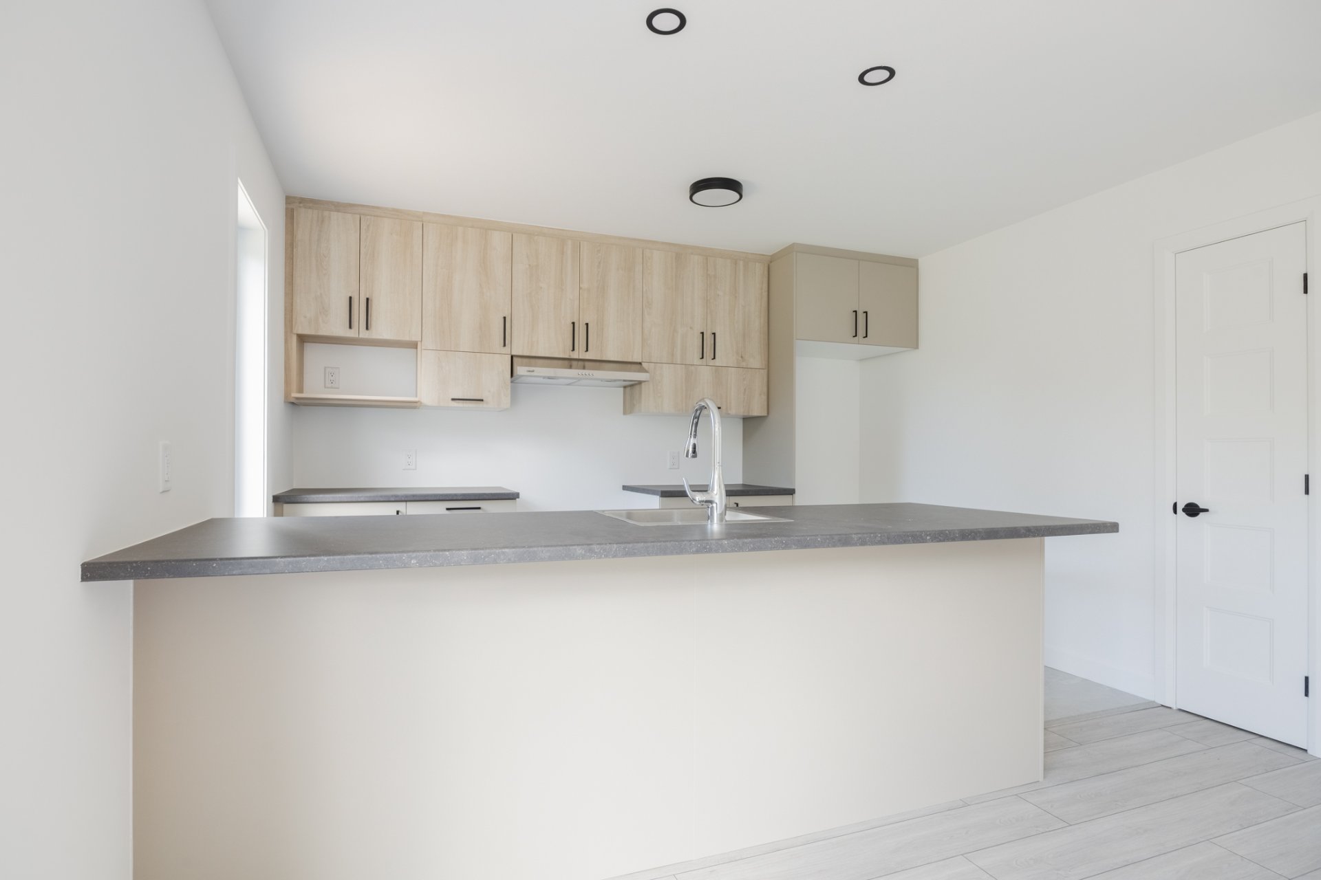 Bi-familial jumelé cottage 20X32 pieds, 3 chambres à coucher à l'étage, escalier de bois, céramique 12x24, armoires jusqu'au plafond, bain podium, douche indépendante en céramique, installation laveuse/sécheuse au sous-sol. 2 stationnements. Frais de copropriété 120$/année. Plan parcellaire et nouveaux lots à venir.